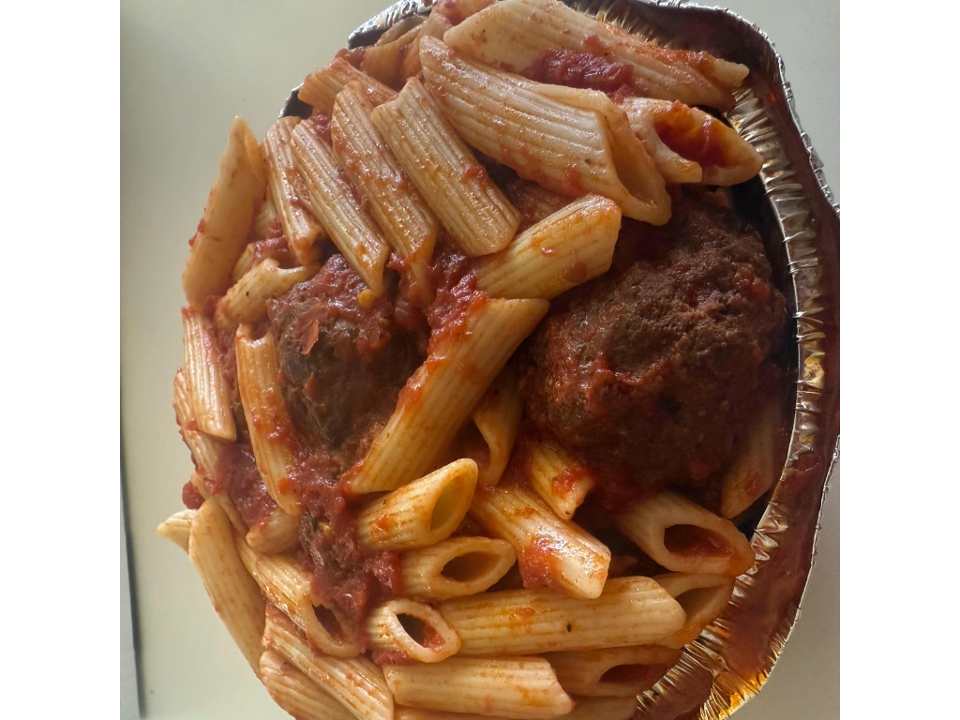 Penne pasta, mixed peppers, mushrooms, olives and onions